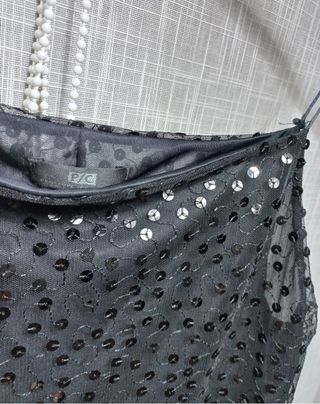 Precioso vestido de fiesta talla M. La tela de fuera es gasa con lentejuelas negro. Se entrega en Coruña ciudad. No hago envíos