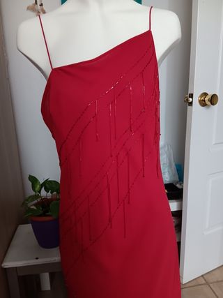 Precioso vestido rojo, talla pequeña mediana pone talla 14, en la última foto están las medidas que corresponde a la 14 es como Talla M, mide 122 de alto desde el tirante al bajo delantero, en la parte de atrás un poco más largo, haciendo pequeña cola. De tirantes con adornos colgantes de pedreria. UNIT COLLECCION de El Corte inglés, calidad. Ideal celebración, orla, fiesta, boda, fin de año y cualquier evento q necesites ir elegante y guapa. A recoger zona Minilla. ¡¡Llegan las fiestas navideñas, este vestido es ideal!!
