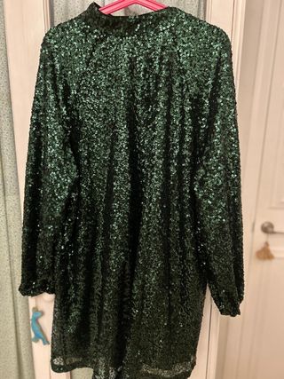 Vestido corto verde de lentejuelas, de hym, perfecto para fin de año o fiestas. Sin uso.