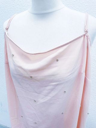 ¡Vestido suelto y deslumbrante de H&M listo para estrenar! Este encantador vestido en color rosa palo está confeccionado en gasa y presenta un detalle de brillos cosidos a mano, que le otorgan un toque muy especial y elegante. Con un precio original de 29,99€, fue adquirido por tan solo 14,99€. Ideal para lucir en outfits de fin de año, este vestido es de talla XXL (44) y está especialmente diseñado para tallas plus size.