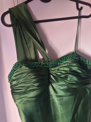 BONITO vestido bajo para boda,fin de año o ocacion especial verde botella. Se puede poner con o sin asillas talla 36. Tiene un solo uso, está nuevo.
