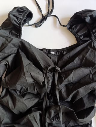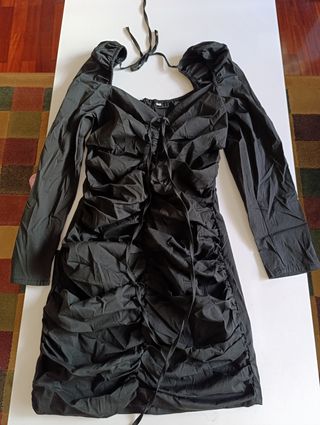 Vestido negro ajustado fruncido de manga larga con cremallera por atrás,tienda local, talla S. Ideal para fin de año.