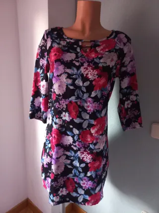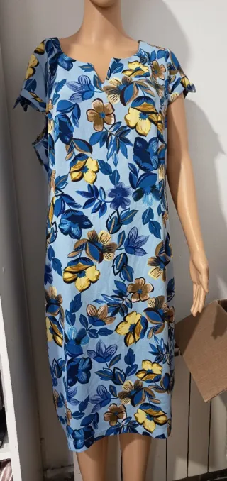Vestido con estampado floral vibrante. Su diseño es ligero y cómodo, ideal para el día a día. - Escote en V. - Manga corta. - Largo hasta la rodilla. Talla 50 De axila a axila mide 55cm De largo mide 106cm MAS ARTÍCULOS EN MI PERFIL GRANDES DESCUENTOS EN LOTES SE PUEDE ENVIAR POR WOLAPOP