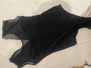 vestido elastico de fórmula joven talla S escote pico y con forro negro interno . manga con 3/4 detalle fruncido .