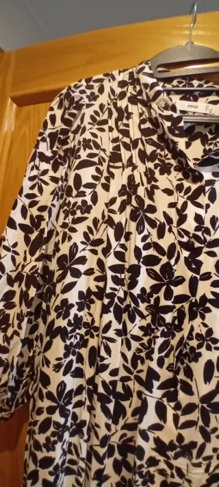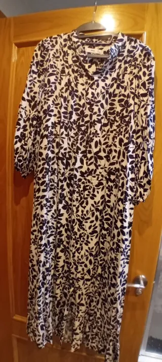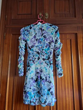 Vestido con un bonito estampado floral en tonos azules. Ideal para lucir un estilo fresco y femenino. - Diseño con escote en V. - Mangas largas abullonadas. - Cintura marcada con detalle fruncido. - 97% Algodón - Perfectas condiciones, nuevo sin etiquetas.