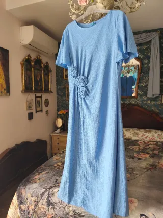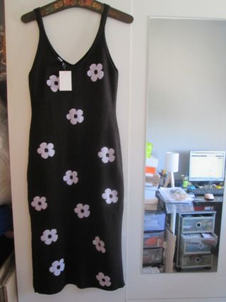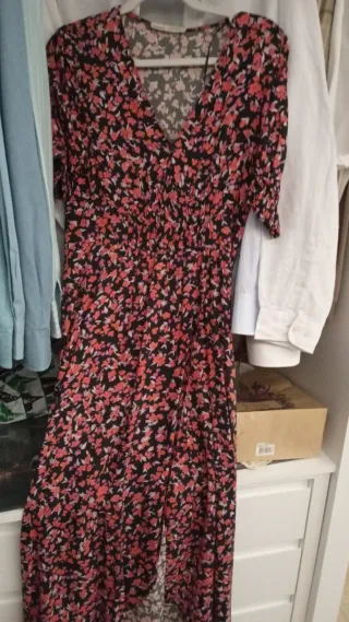 VESTIDO PUNTO FLORES DIVIDED 100% ACRILICO ABERTURA LATERAL Y ELASTICO TALLA M SISA 42CM/ LARGO 120CM