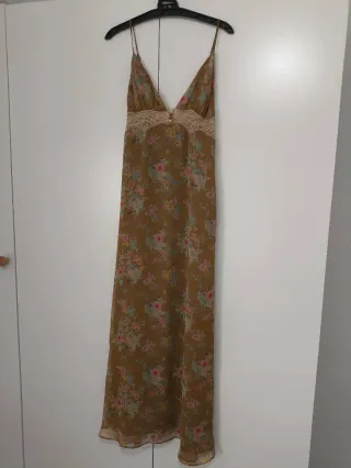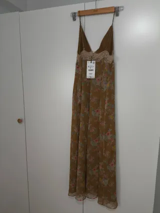 Vestido largo de Zara con estampado floral y detalles de encaje. - Diseño con tirantes finos. - Escote en V. - Bajo con acabado vaporoso. - Nuevo con etiqueta.