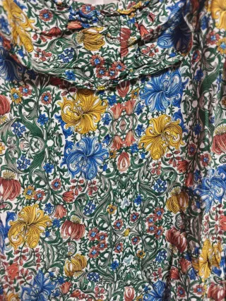 ‼️No incluye complementos, el lazo en la manga es solo decorativo ‼️ Precioso vestido corto con estampado de flores en tonos morados, granates y ocres sobre un fondo crema. Presenta un diseño muy favorecedor con manga larga terminada en un ligero volante y detalle de botones frontales. Es una prenda ideal tanto para un look casual de día como para una ocasión especial, asumiendo que se encuentra en excelente estado. Marca: Zara. Talla: S. Pecho: 45 cm. Largo: 84 cm. . #vestidofloreado #zara #vestidocorto #floralatumn #vintedstyle #tallars