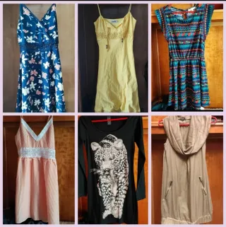 Lote de 6 vestidos marca El Corteinglés, Springfield, zara, Blanco y Shein. El azul de flores escote de pico y el naranja de rayas son nuevos, a estrenar. Talla M aunque uno pone S Son ideales para renovar el armario de cara al verano, quedan muy bonitos. El marrón con un cinturón queda genial y el de leopardo muy chulo también. Cada uno x 15€ o todos por 49€