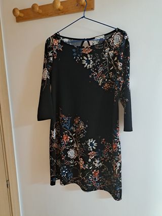 Precioso vestido de la marca Sfera, talla S. Es un vestido de estampado floral en tonos oscuros, con mangas largas y un diseño favorecedor. Utilizado solo en una ocasión. - Diseño con volantes - Tejido ligero y fluido - Perfecto para cualquier ocasión