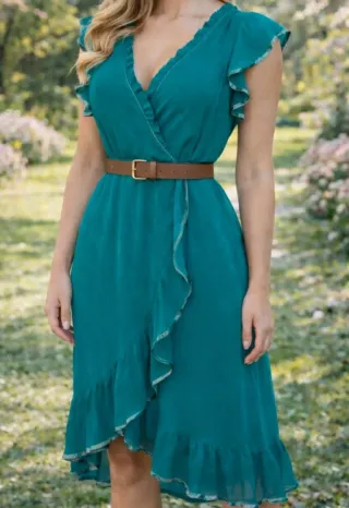 SÓLO ENVÍOS REGALO CINTURON DE FLORES. Vestido vaporoso de gasa con un diseño elegante y favorecedor. - Tejido ligero y fluido. - Detalle de volantes.