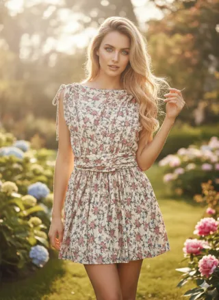 Vestido con un bonito estampado floral. - Diseño sin mangas. - Cintura marcada. - Falda con vuelo