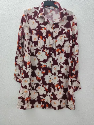 Vestido camisero con un bonito estampado floral. - Diseño con flores en tonos rosas y morados. - Tejido ligero y vaporoso.