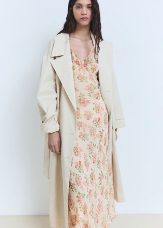 Vestido de verano con un bonito estampado floral. - Diseño con tirantes finos. - Estampado de flores en tonos rosa y beige.