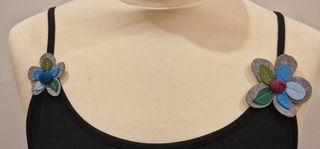 Precioso vestido en color azul teal, talla 42. Es una prenda elegante y versátil, ideal para ocasiones especiales. - Diseño de capa con detalle de flor. - Tejido ligero y fluido.