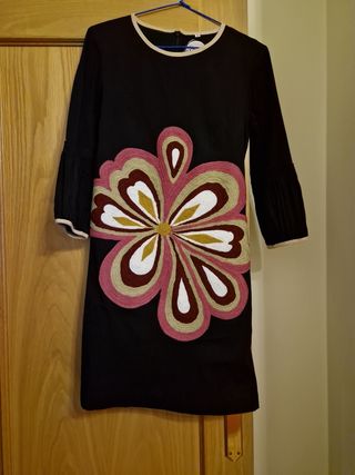 Precioso vestido de flores, ideal para cualquier ocasión. Está nuevo, pedí la 36 y como por tamaño es más para una 38/40 me queda grande y se me pasó el plazo de devolución. La cintura es elástica y es ideal para lucir escote y disimular tripita. Se puede ver y probar sin compromiso.