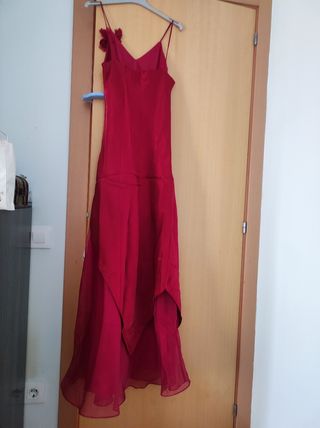 vendo vestido rojo de tirantes largo con detalle de flor, para fiesta o eventos. es una talla mediana-L