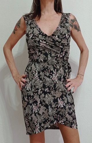 vestido estampado de flores, largo hasta rodillas ajustado, como nuevo, talla s, puedes hacer lotes con otros vestidos en mi perfil.