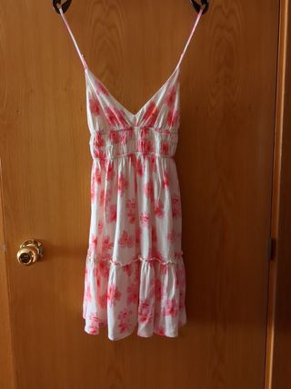 Vestido blanco con flores nuevo talla S, del Pull and Bear. Tiene tirantes ajustables.
