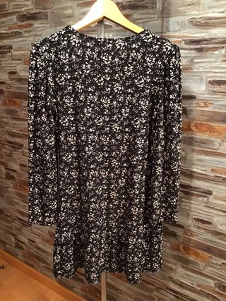 Precioso vestido de flores, ideal para cualquier ocasión. Es de manga larga y tiene un corte favorecedor. - Talla: 40 - Tejido suave y ligero - Diseño con estampado floral en blanco y negro - Perfecto estado