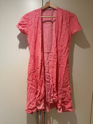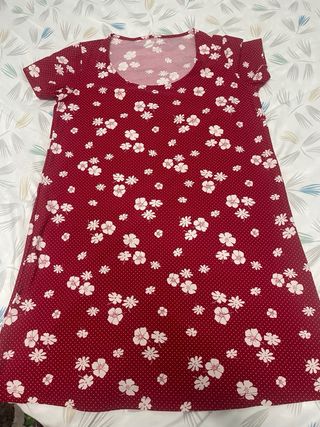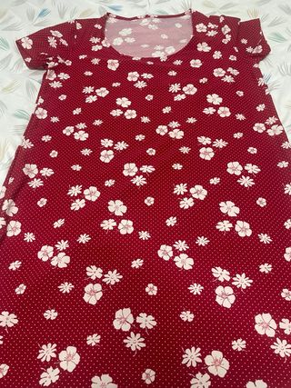 Precioso vestido de verano. Es de color rojo con estampado de florecitas blancas. - Talla única. - Corte amplio y cómodo. - Tejido ligero y fresco.