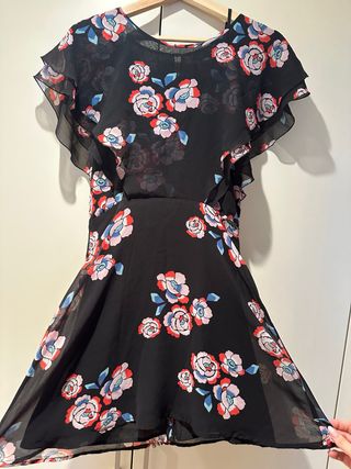 Mini vestido con estampado de flores, mangas ajustables, corte imperio. Poco uso.