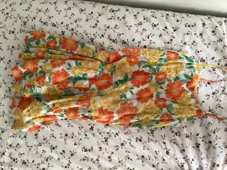 Vestido largo de Zara con un bonito estampado floral, ideal para la playa o para un día de verano. - Diseño con flores en tonos cálidos anaranjados - Tirantes finos. - Tejido ligero y fresco.