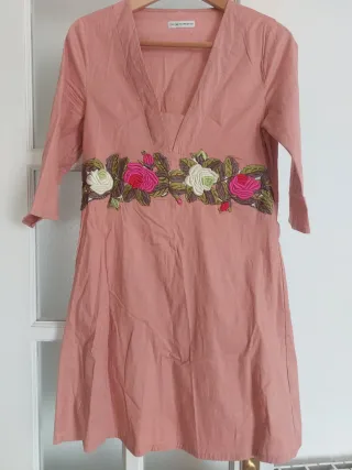 Vestido rosa bordado flores talla M