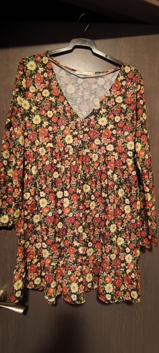 Bonito vestido sin estrenar,de estilo boho romántico.Flores pequeñas,muy suave Con muchísima caída y muy estiloso.Es largo y con dos tiras para ajustar si se prefiere en la cintura o delante.Lleva forro en la zona de la falda.Su precio fuè 39'90€,lo vendo por la mitad porque me viene grande.Es talla L pero sirve sin problema para XL
