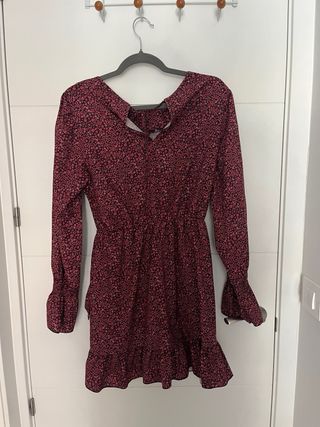 Vestido de Bershka con estampado floral y tejido de terciopelo. - Diseño ajustado. - Mangas largas abullonadas. - Detalle fruncido en la falda.