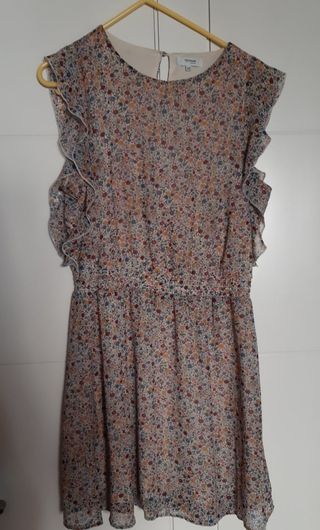 Vendo vestido de florecitas de Formula Joven. Sin manga, con volante, Talla 42
