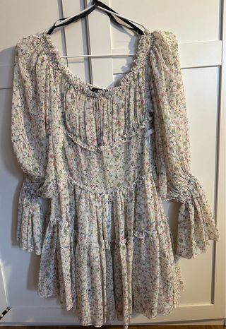 Vestido de Zara con un bonito estampado floral. - Tela con acabado sedoso. - Diseño fruncido en la pechera. - Mangas cortas abullonadas.