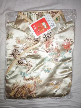Vestido de estilo chino para mujer, con tejido satinado y estampados bordados de dragones, flores y otros motivos. Diseño tradicional con cuello mao y cierre cruzado. Interior colorido. Ideal para ocasiones especiales o como prenda única. Nuevo a estrenar, nunca usado. Original, comprado en Hong Kong. Talla S (persona delgada), medidas: Ancho inferior 37,5 cm aprox. Ancho medio 47 cm aprox. Ancho bajo manga 42 cm aprox. Largo 136 cm aprox. | Lee el anuncio y verifica las fotos, comprende lo que compras. No se incluye nada no especificado/mostrado. No respondo a ofertas/regateos/cambios. No se admiten devoluciones.