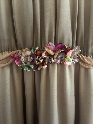 Vestido largo beige/marrón con cinturón de flores