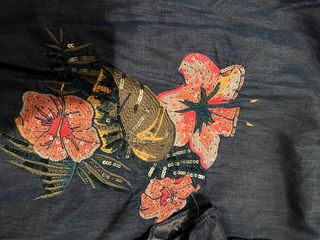 Denim con caída Con flores bordadas Bajo y puño descosido, pero con fácil arreglo