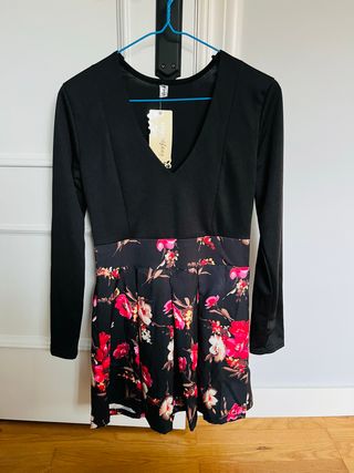 Vestido negro con estampado floral talla M