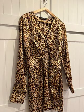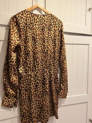Vestido con estampado de leopardo, ideal para cualquier ocasión. - Diseño cruzado. - Cintura elástica. - Mangas largas.