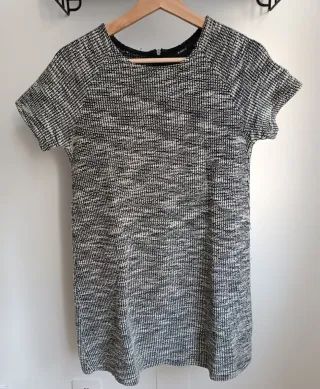 Vestido de manga larga con un llamativo estampado geométrico. Diseño jacquard y estilo retro. Elástico - Diseño de cuello redondo. - Corte recto. - Largo mini. Talla S. Zara. Pecho 45, largo 80 aprox. 🌸🍁