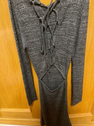 Vestido de manga larga con un tejido elástico y detalles brillantes. El diseño presenta un escote cruzado en la espalda. - Tejido elástico. - Manga larga. - Escote cruzado en la espalda. Talla xs-s