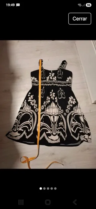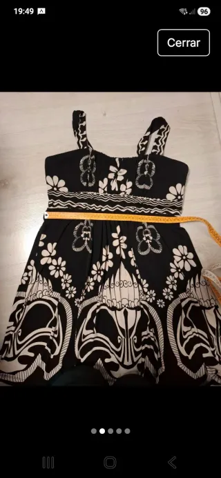 Vestido con estampado floral y diseño moderno. - Cintura elástica para un ajuste cómodo. - Diseño de flores y motivos abstractos. Medidas wn fotos