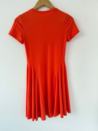 Vestido de corte skater con manga corta. - Tejido suave y elástico. - Falda con vuelo. - Diseño moderno y favorecedor.