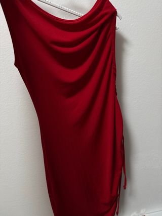 Vestido elegante de color rojo, con un diseño moderno y favorecedor. - Diseño de un solo hombro. - Detalle de cordones ajustables en el lateral. - Tejido suave y elástico.