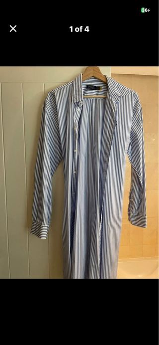 Vestido camisero de Ralph Lauren con un clásico estampado de rayas verticales. Una prenda versátil y elegante. - Diseño de rayas azules y blancas. - Cuello camisero. - Manga larga.