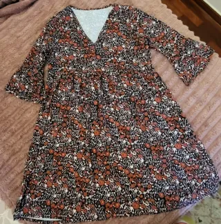 Vestido con un bonito estampado paisley en tonos tierra y vibrantes. Diseño de manga 3/4. Sin uso,estaba guardado. Hago envíos - Estampado paisley detallado en el frente. - Detalle de estampado en los puños de las mangas. - Borde inferior con diseño a juego.