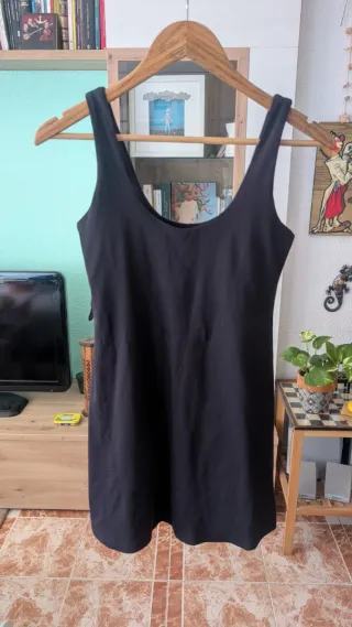 Vestido negro de Oysho con mono interior ceñido, ideal para cualquier ocasión. Comodísimo. - Diseño de tirantes. - Capa interior ajustada que protege para que no se vea la ropa interior. - Corte recto. - Tejido suave y cómodo.