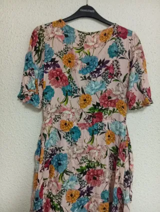 Vestido con un bonito estampado floral y de formas abstractas. Ideal para cualquier ocasión. Nuevom No lo he usado - Diseño de manga corta. - Largo midi.