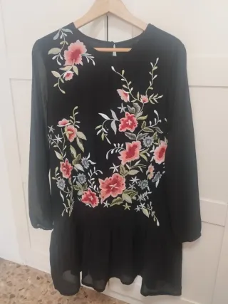 💰SOLO CON PAGO POR WALLAPOP ▶️ ELEGIR ENVÍO POR INPOST. NO ENVÍO POR CORREOS Elige varios artículos de mi perfil, y paga sólo un envío No se reserva sin compra ▶️ También entrega en mano. Pedido mínimo de 3€ 📍Vestido con un bonito estampado floral en tonos negros y multicolor. Es una prenda versátil y cómoda. 📍 MEDIDAS EN FOTOS - Diseño con cuello redondo. - Manga larga. - Estampado de flores pequeñas.