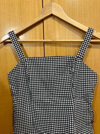 Vestido con estampado de cuadros. - Diseño de tirantes. - Cuadros blancos y negros.
