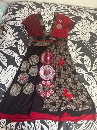 Precioso vestido de verano de la marca Desigual, completamente nuevo. ✔️ Diseño colorido y original, típico de la marca. ✔️ Tejido ligero y fresco, perfecto para el buen tiempo. ✔️ Corte cómodo y favorecedor. Ideal para llevar en vacaciones, paseos o eventos informales.
