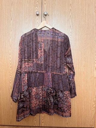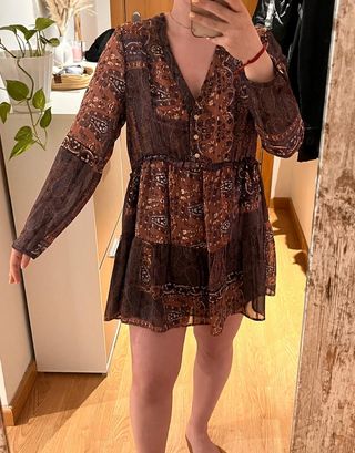 Precioso vestido de Zara, ideal para cualquier ocasión. Es ligero y fluido, perfecto para la primavera u otoño. - Diseño de estampado paisley en tonos marrones y naranjas. - Manga larga. - Cuello en V. Talla S Usado un par de veces, está como nuevo.